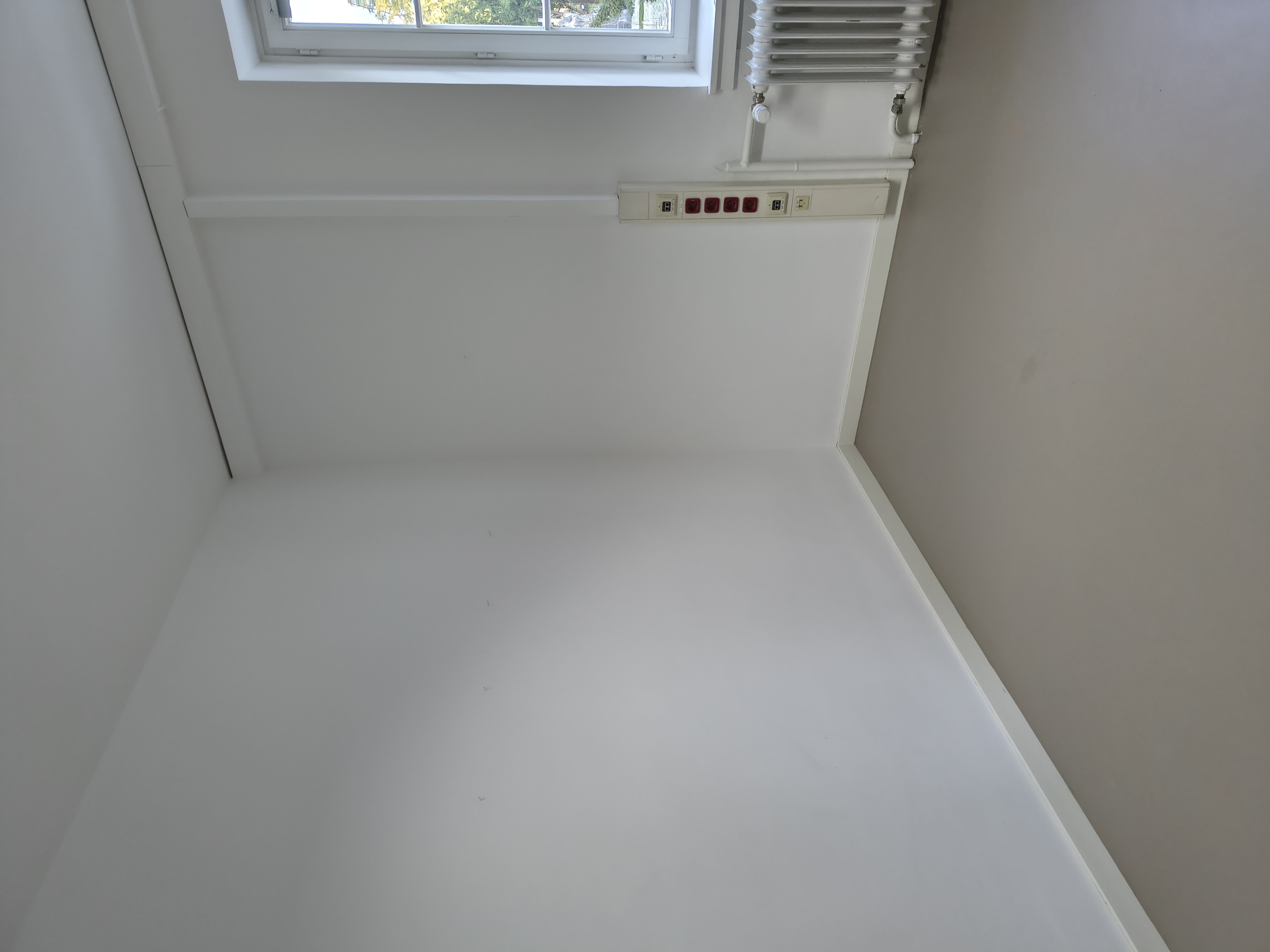 Ab sofort ist ein kleiner, heller Raum im 1 OG frei mit Sproßenfenster und Blick ins Grüne. Alle Wände sind weiß gestrichen, Boden ist hellgraues Linoleum. Bevorzugt wird jemand mit Bürotätigkeit (ohne ständigen Kundenbesuch) um im I. OG etwas Ruhe zu haben. Zurzeit ist die Hälfte des Raumes möbeliert (Schreibtisch Sofa, Kommode), die andere Hälfte frei, die Gestaltung kann nach Absprach anders erfolgen.